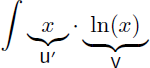 Remarque : comme nous connaissons la primitive de ln(x) on aurait pu aussi choisir u' et v comme ceci afin d'intégrer directement ln(x) dès le début :