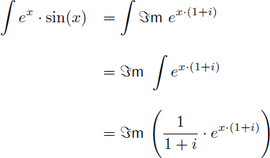 sin(x).ex est la partie imaginaire du même nombre complexe ex.(cos(x)+i.sin(x)) :