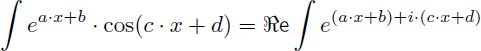 A retenir : l'utilisation des nombres complexes permet de trouver les primitives de ea.x+b.cos(c.x+d) et de ea.x+b.sin(c.x+d) sans faire d'intégration par parties.