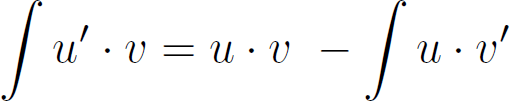 Remarque : cette formule de l'intégration par parties n'est que la conséquence de la dérivée du produit de deux fonctions et peut donc se retrouver facilement si on sait que (u.v)'=u'.v+u.v'